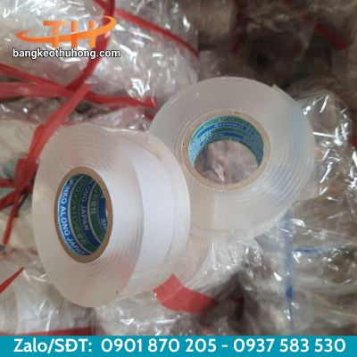 Băng keo trong suốt 2 mặt, còn gọi là băng keo hai mặt siêu dính hay băng keo ma thuật, là sản phẩm cải tiến được sản xuất từ chất liệu Acrylic kết hợp công nghệ Nano gel hiện đại. Nhờ đó, sản phẩm có khả năng bám dính chắc chắn, không biến dạng và không bị trượt khi dán trên các bề mặt như tường, kính, gỗ, kim loại, nhựa…