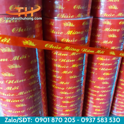 Băng keo chúc mừng năm mới là sản phẩm được in sẵn các dòng chữ như “Chúc mừng năm mới”, “An khang thịnh vượng”, “Vạn sự như ý”, cùng họa tiết hoa mai, pháo hoa, bánh chưng, biểu tượng linh vật của năm… tạo nên cảm giác vui tươi và ấm áp.