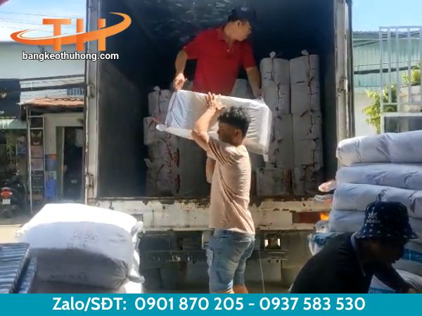 Ngay sau khi nhận được đơn đặt hàng từ phía đối tác, đội ngũ kho vận của Thu Hồng đã tiến hành đóng gói và chuẩn bị hàng hóa theo đúng quy cách. Mỗi bao chứa đúng số lượng cuộn băng keo 4F8, được quấn chắc chắn, đảm bảo không bị móp méo trong quá trình vận chuyển. Quá trình bốc xếp và giao hàng được triển khai nhanh chóng, đúng thời gian cam kết.